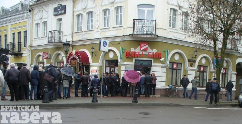 Дождливым утром 30 марта на перекрестке улицы Советской и проспекта Машерова в Бресте клиенты «Дельта Банка» выстроились в очередь. Они подавали заявления на возврат своих вкладов.