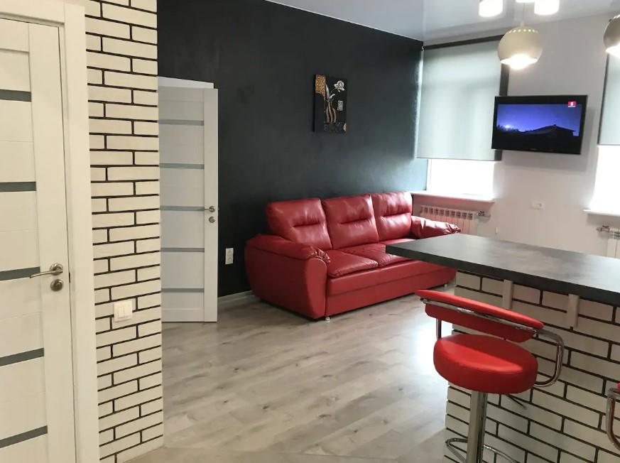 Современная квартира-студия находится в центре города, рядом с вокзалами. По приезду хозяин лично встретит гостей.