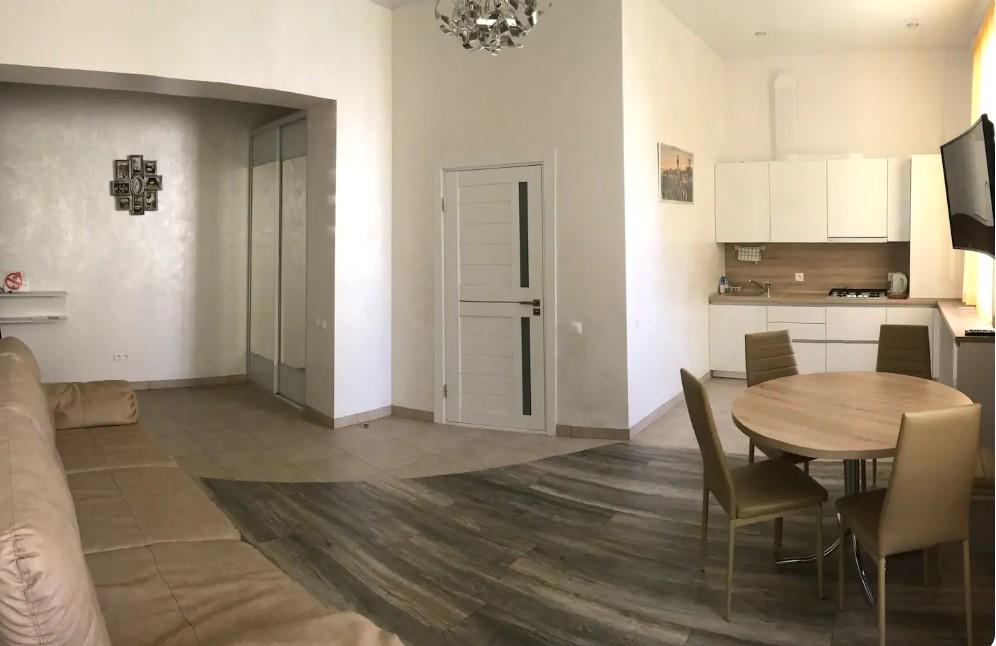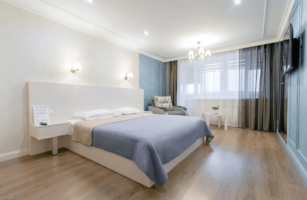 Апартаменты рассчитаны на шестерых человек. В их распоряжении будут двуспальная кровать и 2 раскладных дивана.
