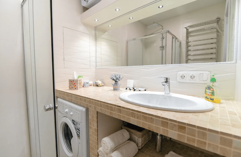В квартире 1,5 ванных комнаты и 2 спальни: 2 большие кровати и 1 диван-кровать. Одновременно тут могут проживать до 6 человек.
