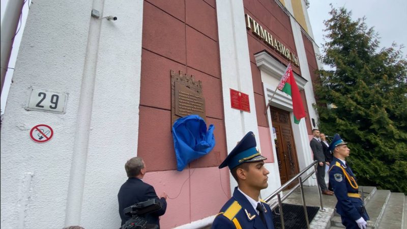 На здании гимназии №1 установили памятную доску, посвященную присвоению ей имени Защитников Брестской крепости