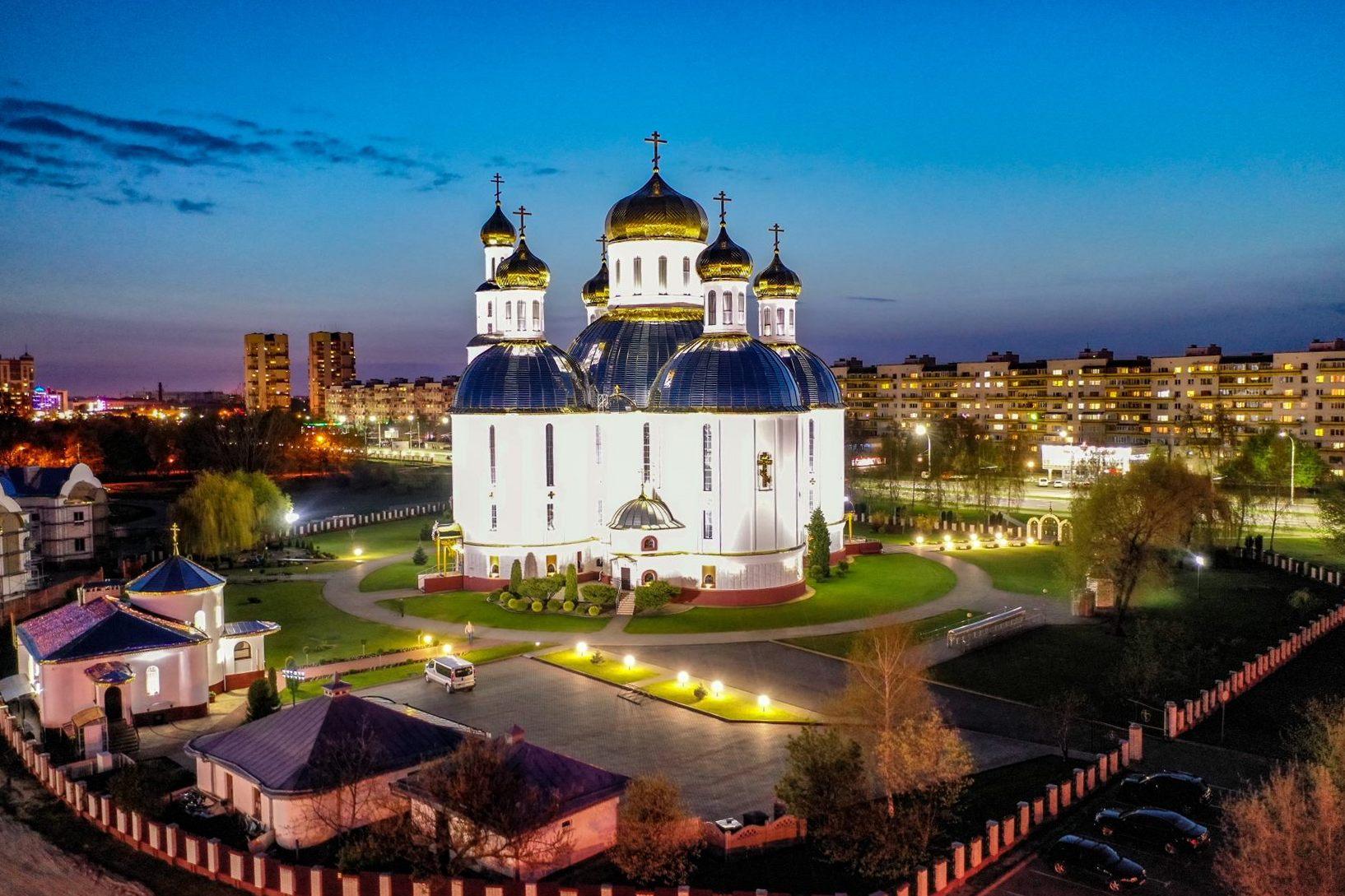 Собор был построен в микрорайоне Восток в 1995 году в честь Победы в Великой Отечественной войне. Это крупнейшее религиозное сооружение города и одно из самых больших в стране. Одновременно в соборе могут находиться до 5 тысяч прихожан. Одним из руководителей и идейным вдохновителем строительства храма был протоиерей Евгений (Парфенюк), ветеран ВОВ.