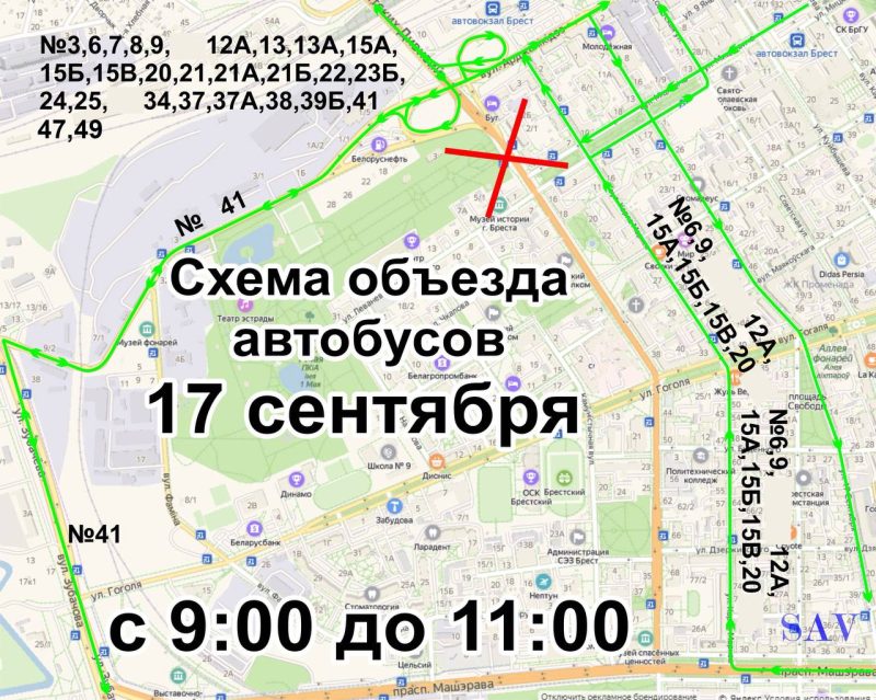 Движение транспортных средств на участке улицы Ленина от спуска с путепровода до улицы Мицкевича будет ограничено с 9.00 до 11. 00 из-за празднования так называемого Дня народного единства. В этот период времени общественный транспорт будет следовать в объезд. Об этом сообщает Александр Рогачук.