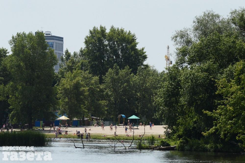 На пляже на противоположном берегу Мухавца тоже немало людей