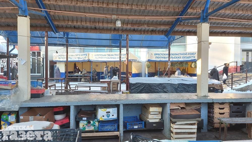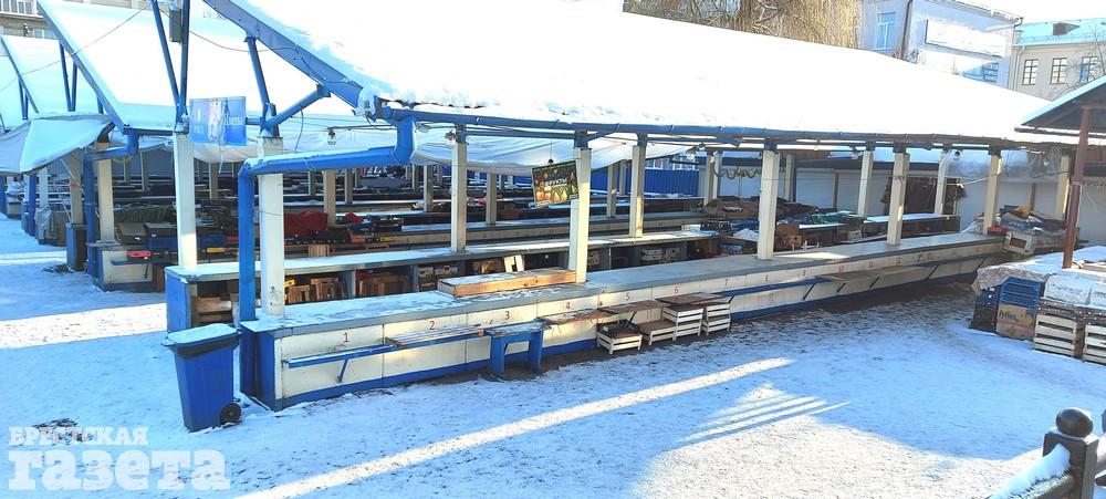 Сегодня утром в Бресте столбик термометра опустился ниже минус 12. Подостыла и жизнь в городе. Особенно это заметно на «Брестском рынке». Открытые торговые ряды сегодня практически пусты. Работают лишь отдельные павильоны.