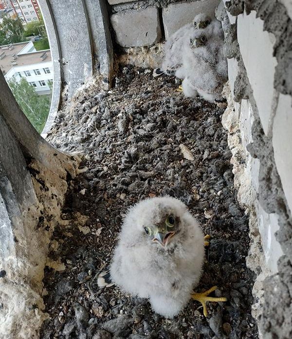 Вот такие очаровательные птенцы краснокнижной пустельги живут в нишах брестских многоэтажек (фото)