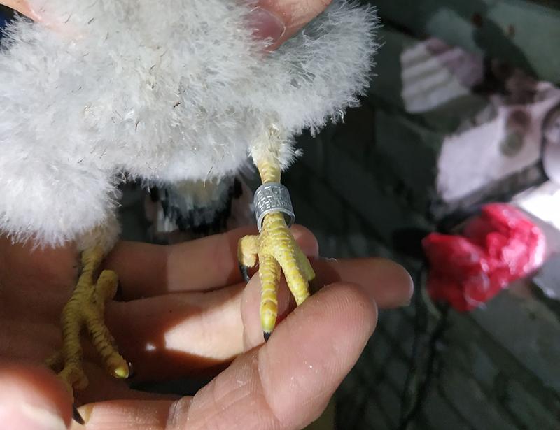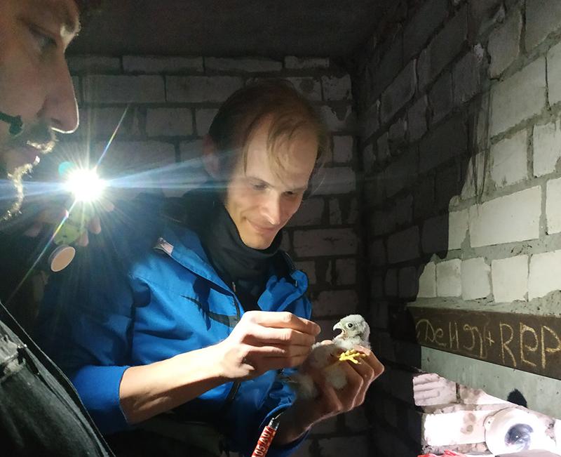 Команда областного отделения «Аховы птушак Бацькаўшчыны» отправилась кольцевать соколят в Бресте и сделала несколько фотографий малышей.