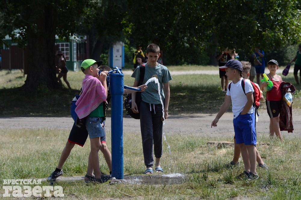 Облюбовала детвора и колонку на пляже. В такую жару можно баловаться и обливаться сколько угодно.