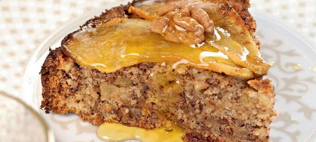 Оставшиеся груши очистите и нарежьте тонкими пластинами. Разложите их веером на поверхности теста и слегка вдавите руками.