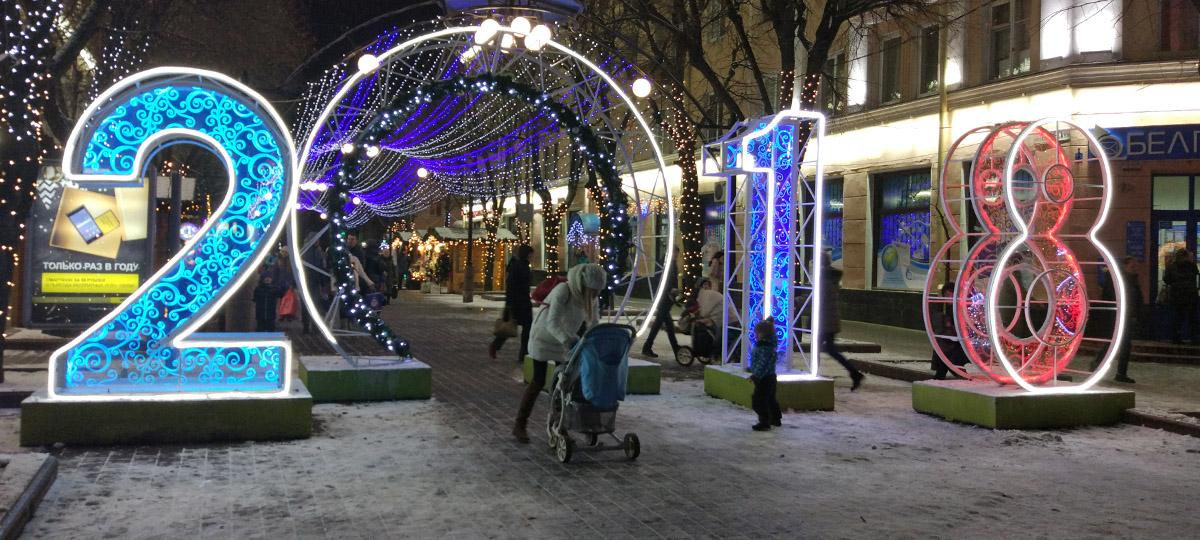 Главную новогоднюю елку на площади Ленина откроют 23 декабря. Уже работают многие светодиодные композиции.