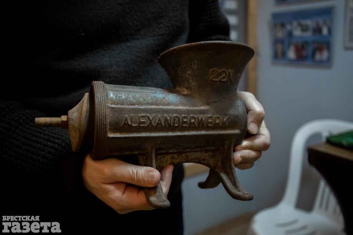 Экспонат музейной комнаты, довоенная немецкая мясорубка. Найдена на территории бывшей колонии Варбурга в Бресте