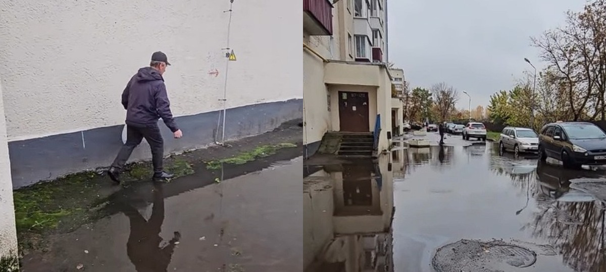 @365bel В Могилеве возле жилого дома образовалось настолько большое «болото», что местные жители не в состоянии передвигаться по двору. Судя по видео, прохожим приходится перепрыгивать через огромную лужу во дворе дома 30 на Пушкинском проспекте в Могилеве или обходить ее по самым краям, держась за стены дома. Автор ролика объяснил, что городское ЖЭУ не спешит решать эту проблему, и в таком случае есть смысл «обращаться к Рыгоровичу». Но с этим не согласился другой житель дома. #могилев #беларусь #годблагоустройства #новостибеларуси #6регион ♬ original sound — 365bel