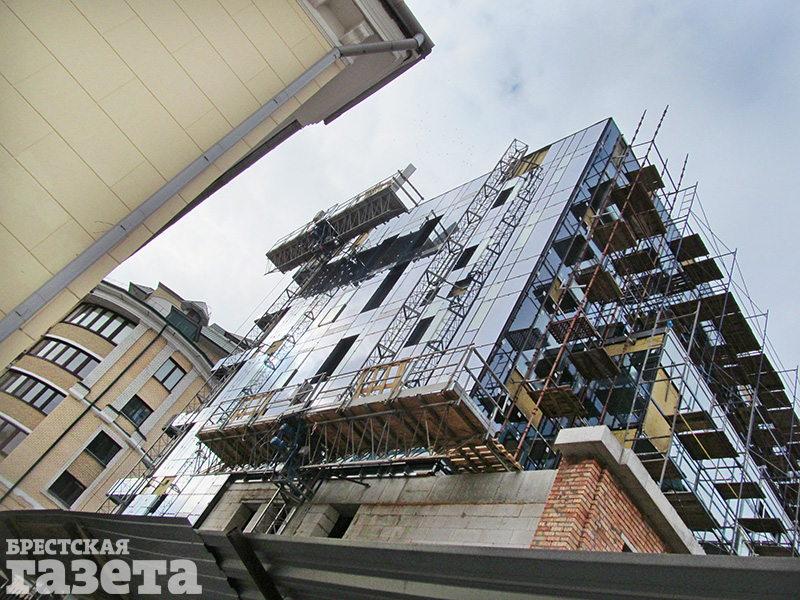 У строящейся на ул. Советской гостиницы зеркальные фасады. Главный архитектор Бреста считает, что их дополнительная функция — закрыть 9-этажное здание «обликовского» дома
