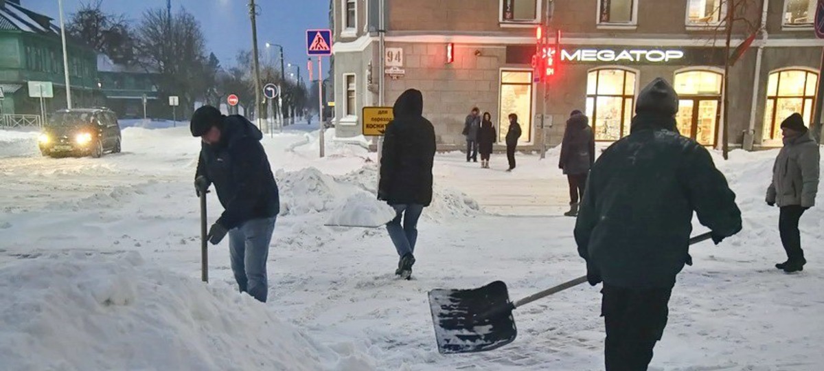09.01.2026 17:39 Жители Барановичей убирают снег 8 января 2026 года. Источник фото